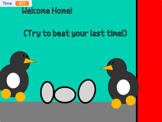You are a lost penguin. Use arrow keys to move and try to dodge the spikes to get back to your home!
